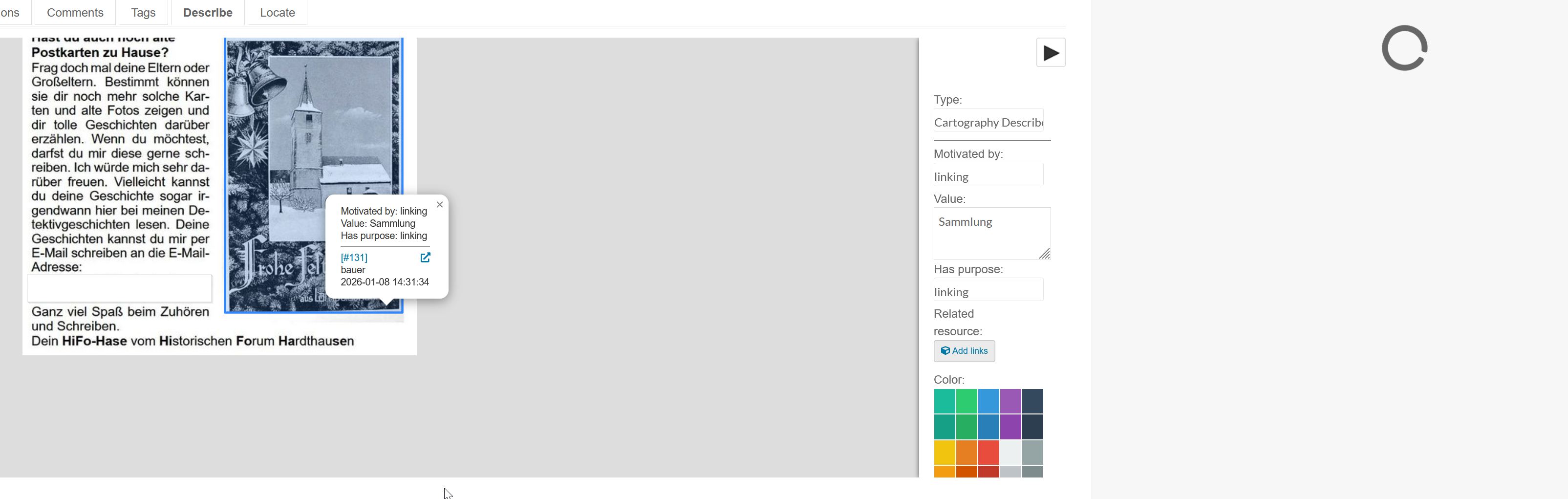 I tried to use the Dublin “reference” and “reference to” ressources but the circle does not change though the items are cross referenced. I think this might also be an installation problem. Any ideas or is there somebody who could describe how it is supposed to work?