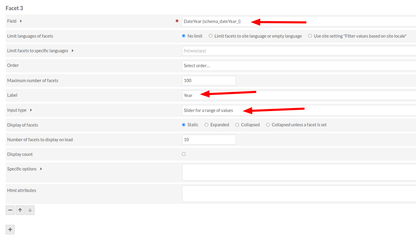 With the internal sql search engine, I can create a working date range facet with the ‘Slider for a range of values’ input and setting the min/max values in the facet’s options. But not so much in Solr.