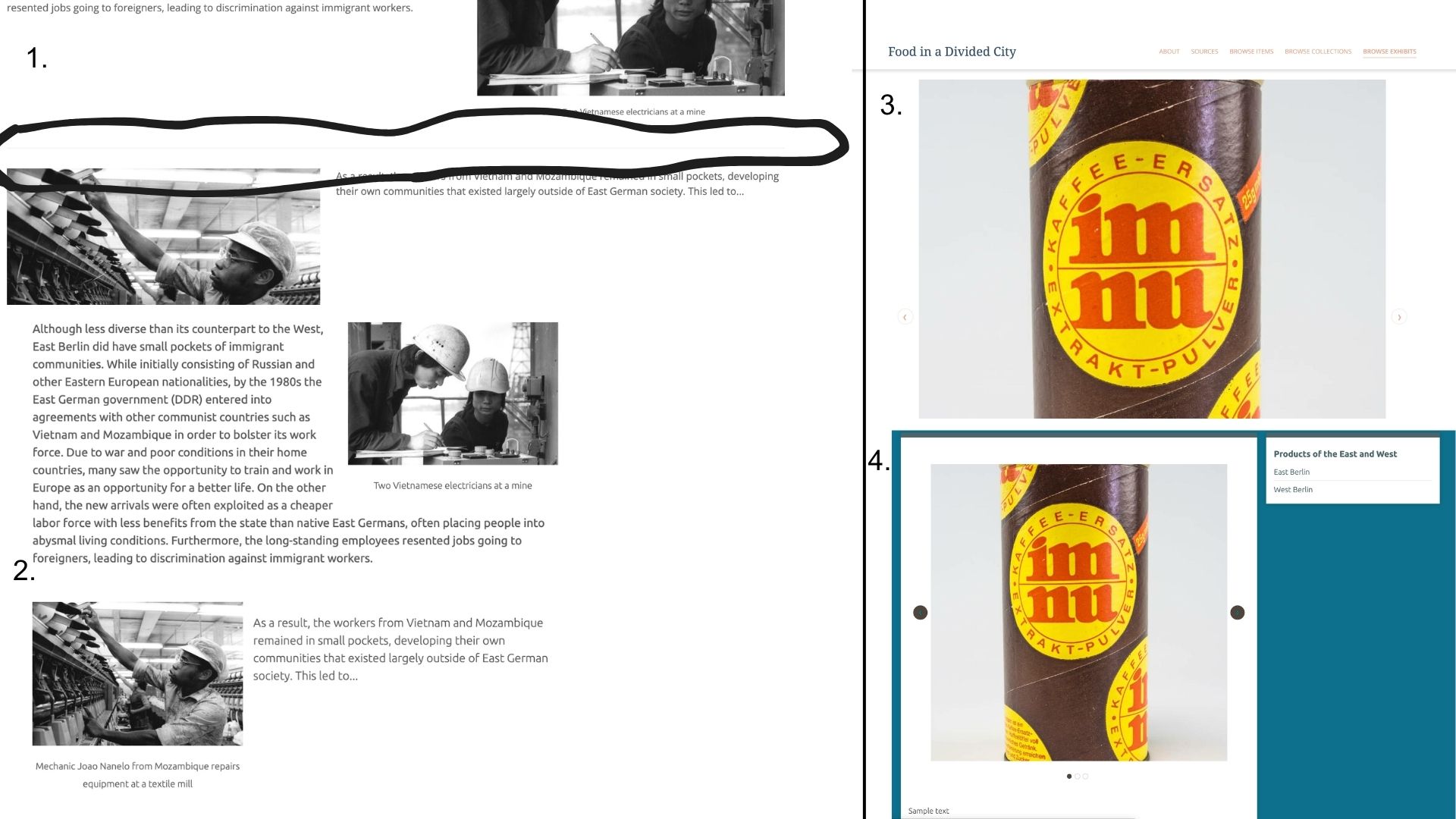 Whereas this screenshot shows the same exhibit, but using the seasons theme. As far as I can tell, Freedom is the only them that places a line between each block that is added.