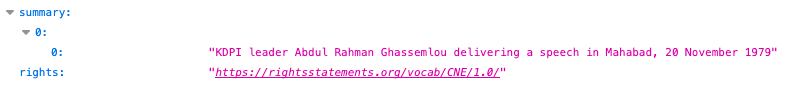 - Path: /summary/[[[‘KDPI leader Abdul Rahman Ghassemlou delivering a speech in Mahabad, 20 November 1979’]] is not of type ‘object’]