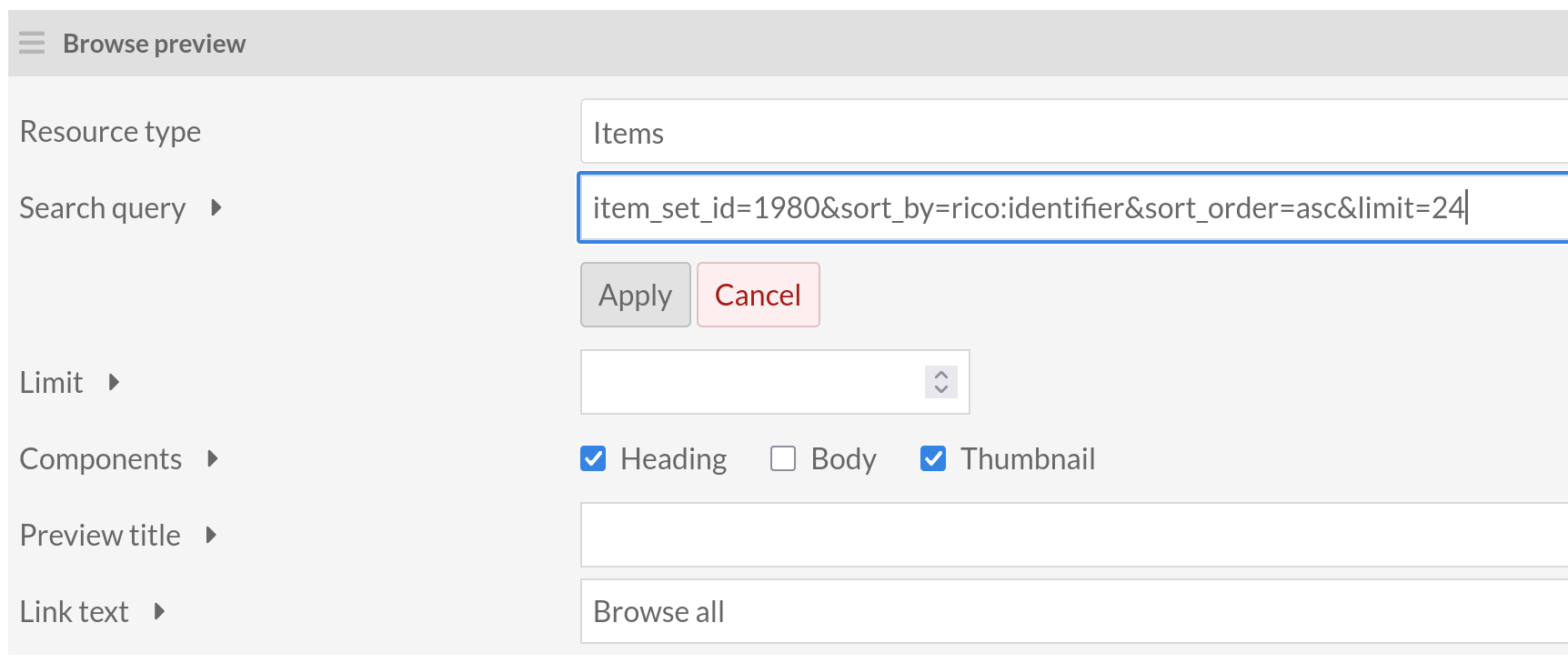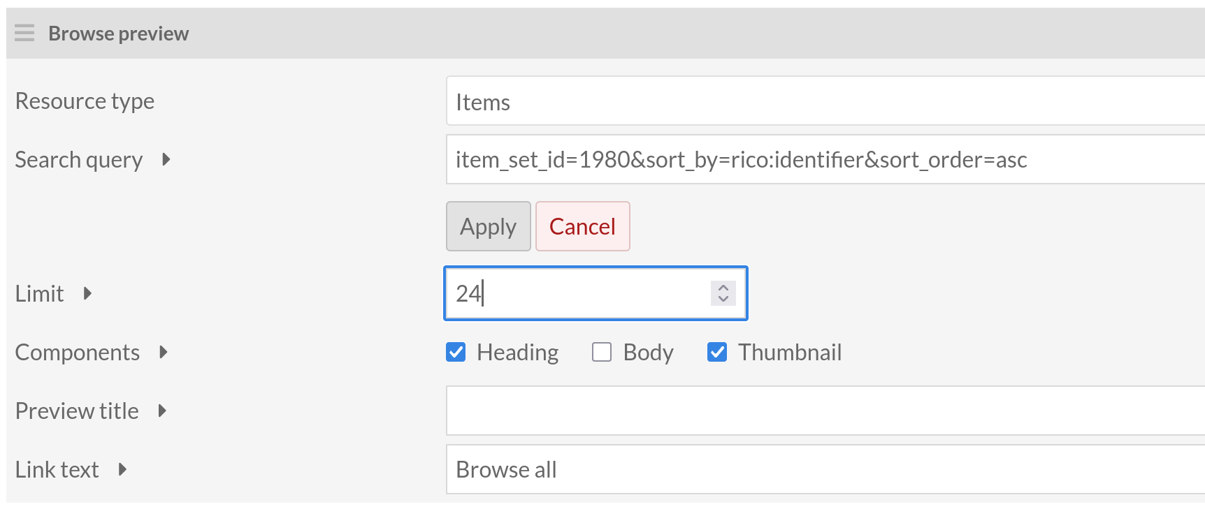 @boregar, where in the documentation does it say you can use the limit parameter in a search query string? Specifically for the Browse Preview block, I would assume that it would be an option in the query editor if it were intended to function in the search query string and not rely on the Limit field in the form.