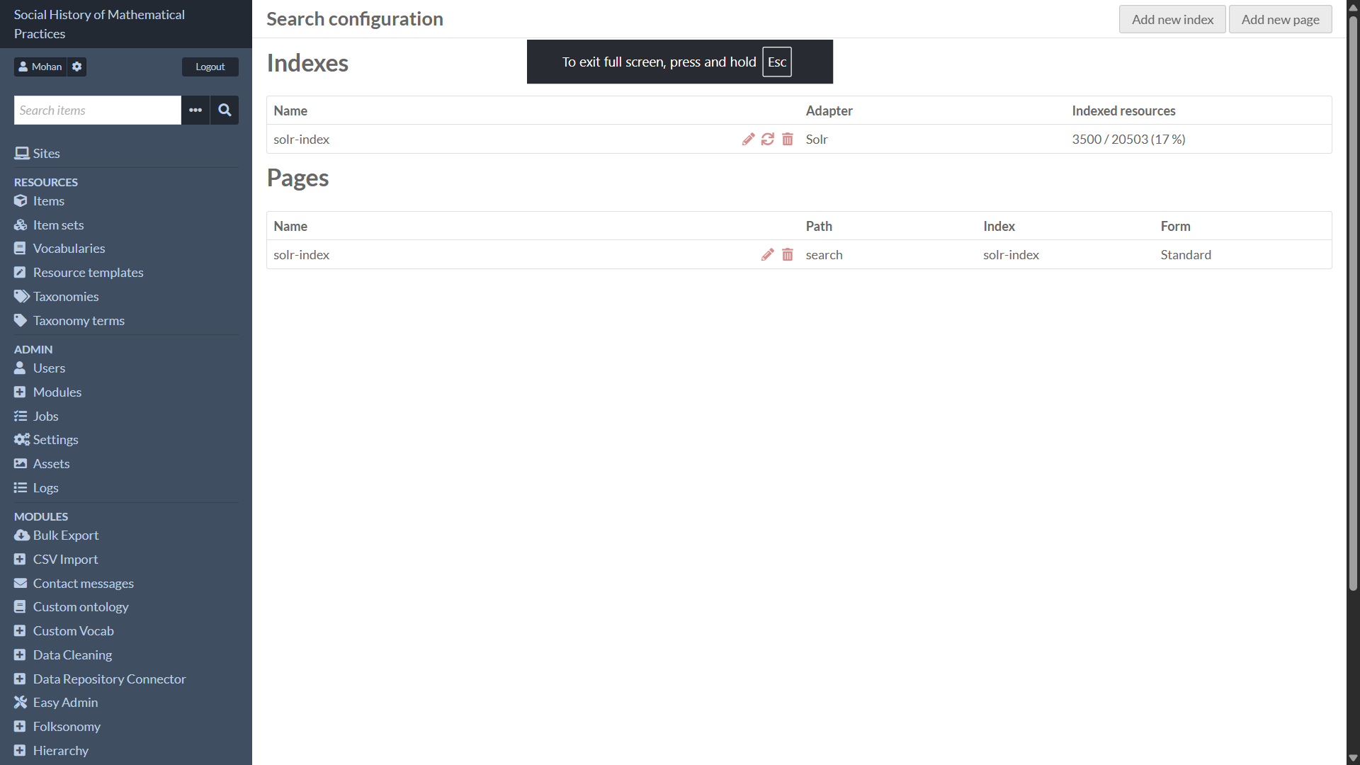 I installed the Search and Solr modules and configured Apache Solr 9.10.1.