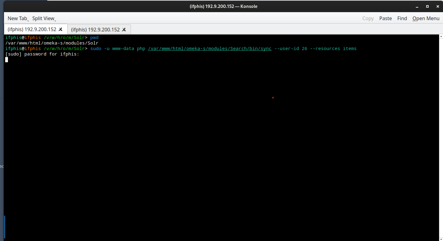 sudo -u www-data php /var/www/html/omeka-s/modules/Search/bin/sync --user-id 26